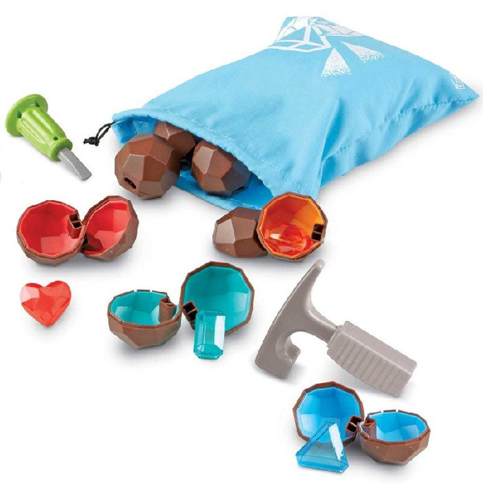 Набор познакомьт детей с профессией геолога. Орудуя инструментами, ребенку необходимо извлечь из "камня" драгоценные кристаллы. В рамках необычной ролевой игры дети закрепляют цвета и оттенки, формы и счет.